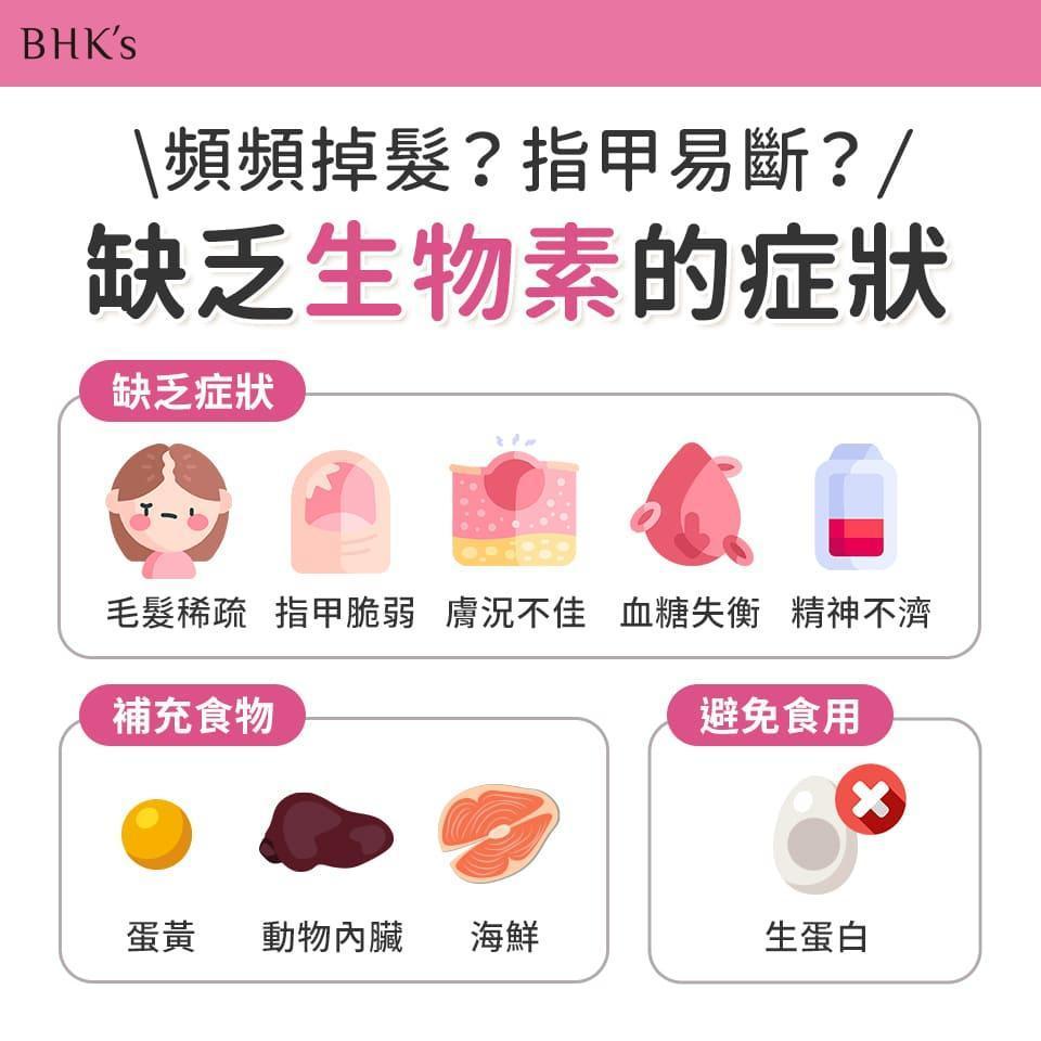 因為生活及飲食的習慣的不同,像是服用會與生物素產生交互作用的藥物;長期食用生蛋白、酒精;過度節食瘦身、營養不均衡,皆會影響生物素的吸收,造成人體缺乏生物素的現象,容易出現以下問題: