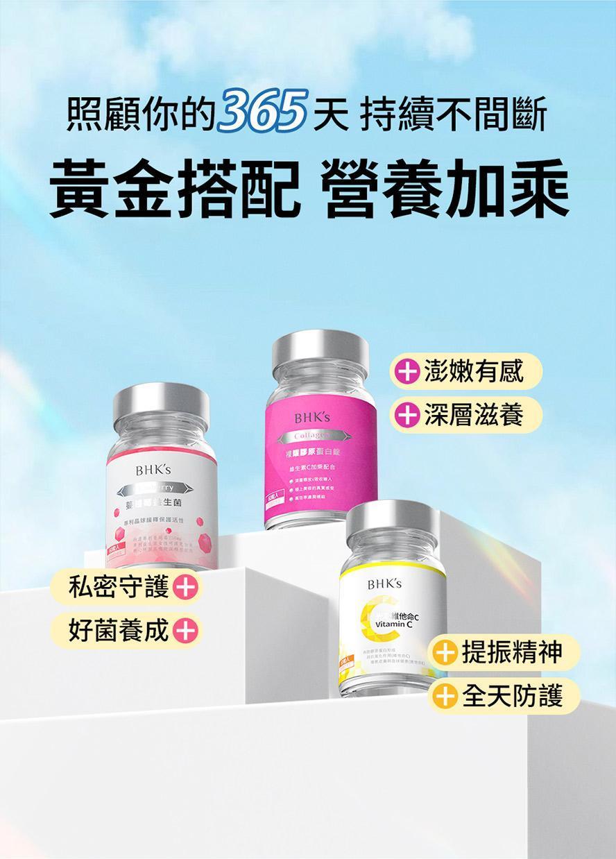 BHK's Cranberry Probiotics Tablets (60 tablets/bottle) + Collagen Tablets (60 tablets/bottle)x2 + Collagen Tablets (30 tablets/bag) + Vitamin C Double Layer Tablets (60 tablets/bottle) + Cranberry Probiotics Tablets (30 tablets/bag)